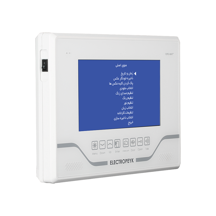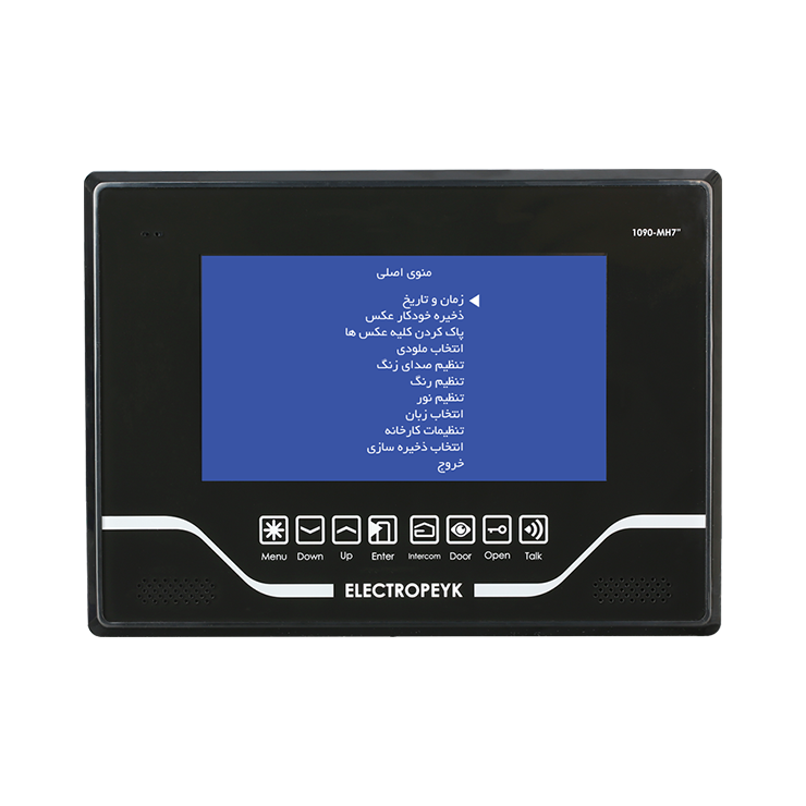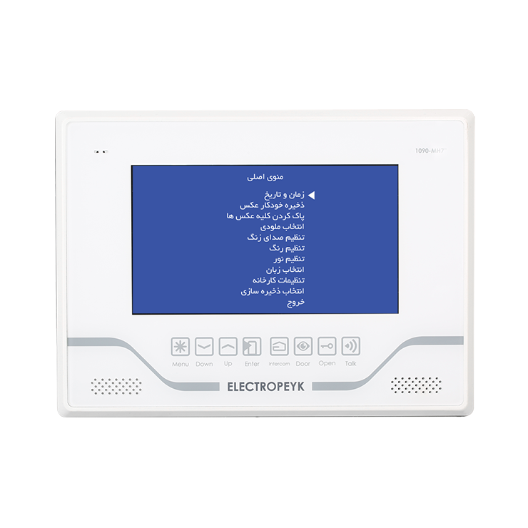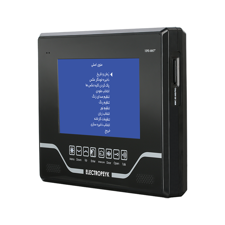 مشخصات ظاهری گوشی تصویری الکتروپیک مدل ۱۰۹۰ با ظاهری زیبا و دلنشین برای مشتریانی که میخواهند گوشی تصویری مدل تب لتی داشته باشند پیشنهاد میشود. این محصول فاقد دسته گوشی بوده و صدای مراجعهکننده از طریق اسپیکر تعبیهشده بر روی محصول قابلشنیدن است. در قسمت جلوی گوشی ۸ عدد دکمه لمسی برای ورود به رابط کاربری OSD محصول و همچنین انجام عملیاتی نظیر باز کردن درب، مشاهده تصویر مراجعهکننده و برقراری ارتباط داخلی میتوان از آنها بهره برد. جنس بدنه این محصول از مواد ABS ساختهشده که مقاومت بالایی را در برابر کهنگی و تغییر رنگ به آن داده است. در قسمت کنارهی سمت راست محصول شیار کارت حافظه قرار دارد که میتوان تا ۱۶ گیگابایت ظرفیت آن را ارتقا داد. مشخصات فنی این گوشی تصویری با طراحی منحصربهفرد و فوقالعاده شیک توانسته نظر هر بینندهای را به خود جلب کند. از جمله قابلیت های این محصول میتوان به صفحهنمایش ۷اینچ باقابلیت اتصال به دو صفحه تصویری، دو دوربین امنیتی، امکان بازبینی تصاویر، فیلمها و صداهای ذخیرهشده، ظرفیت حافظه ۸گیگابایت با امکان ارتقاء تا ۱۶گیگابایت، ارتباط داخلی یکبهیک و نشانگر مراجعه بدون پاسخ اشاره کرد. در تولید بردهای الکترونیکی محصول از فنّاوری SMT با پکیج ۰۶۰۳ استفادهشده است. همچنین فیبر بردهای الکترونیکی از نوع KB۶۱۶۰ است. نشانگر مراجعه بدون پاسخ یکی از ویژگیهای محصول نشانگر مراجعه بدون پاسخ است زمانی که مراجعهکننده زنگ واحد را میزند و اگر تماس برقرار نشود، از مراجعهکننده عکسبرداری میکند و در حافظه داخلی ثبت مینماید در این حالت کلید لمسی بهصورت چشمکزن عمل میکند و این هشدار تا زمانی که عکس داخلی بررسی نشود قطع نمیگردد. ارتباط یک به یک این ویژگی کاربران را قادر میسازد تا از این دستگاه بهعنوان یک تلفن داخلی برای ارتباط با دیگر مشترکین و همچنین نگهبانی بهصورت خصوصی استفاده کنند و دیگر احتیاجی به زنگ زدن هر واحد برای برقراری ارتباط نباشد. برای برقراری ارتباط بین مانیتورها نیاز به ۴ رشته سیم است که بهصورت موازی بین واحدها متصل میشود. برای برقراری ارتباط داخلی، با برداشتن دسته گوشی و لمس کلید اینترکام میتوان با واحد ارتباط گرفت، لازم به ذکر است در ارتباط یکبهیک فقط دو واحد میتوانند باهم ارتباط برقرار نمایند. مشخصات فنی و قابلیتهای محصول طراحی زیبا با نمایشگر ۷ اینچ در ۲ رنگ سفید و مشکی دارای رابط گرافیکی برای تنظیمات محصول (OSD) ارتباط داخلی یکبهیک دارای حافظه داخلی قابلیت افزودن حافظه جانبی: تا ۱۶ گیگابایت با کارت (SD) دارای ۱۵ ملودی زنگ متنوع امکان انتخاب زبان: فارسی و انگلیسی قابلیت عکسبرداری دارای نشان دهنده زنگ بدون پاسخ (چراغ چشمکزن) قابلیت اتصال به ۲ پنل درب ورودی و ۲ دوربین امنیتی دارای صفحهکلید لمسی بهرهگیری از فناوری ساخت (SMT) جنس بدنه (ABS) آنتی استاتیک،بدون تغییر در رنگ محصول محتویات بستهبندی گوشی تصویری مدل ۱۰۹۰ پایه نگهدارنده ۴عدد پیچ و رولپلاک ۴دفترچه راهنما کارت ضمانت ۲عدد کانکتور ۵پین ۱عدد کانکتور ۴پین