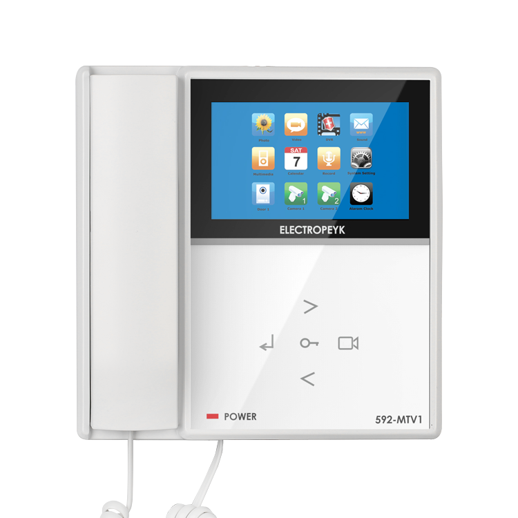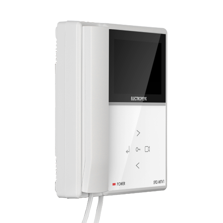 گوشی تصویری الکتروپیک مدل ۵۹۲ با طراحی زیبا و متفاوت نسبت به مدل قبلی آن، محصولی خاص و چشمگیر را برای مشتریان به ارمغان آورده است، این مانیتور دارای صفحهنمایش ۴اینچ بوده و در دو رنگ سفید و مشکی عرضهشده است. در کنار گوشی و بالای دکمههای تنظیمات، محل تعبیه کارت حافظه قرارگرفته است که عکس و فیلمهای ذخیرهشده ( تا ظرفیت ۱۶ گیگابایت ) را در خود ذخیره میکند و هر زمان که کاربر نیاز به بازبینی آنها داشت از طریق گزینههای داخل منو قابلدسترسی خواهد بود. در قسمت رابط کاربری علاوه منوی تنظیمات گرافیکی در نظر گرفتهشده برای محصول، ۵عدد دکمه لمسی با فناوری تاچ خازنی در قسمت جلو گوشی قرارگرفته است که از طریق آنها میتوان عملیاتی نظیر باز کردن درب، مشاهده تصویر بیرون، ورود به منوی تنظیمات و غیره را انجام داد. در قسمت چپ محصول نیز دسته گوشی بهمنظور برقراری ارتباط صوتی تعبیهشده است که پس از پایان مکالمه با مراجعهکننده با قرار دادن دسته گوشی، ارتباط صوتی و تصویر بهصورت مغناطیسی قطع میگردد. جنس بدنه این محصول از مواد ABS ساخته شده مقاومت بالایی را در برابر کهنگی و تغییر رنگ به آن داده است.
