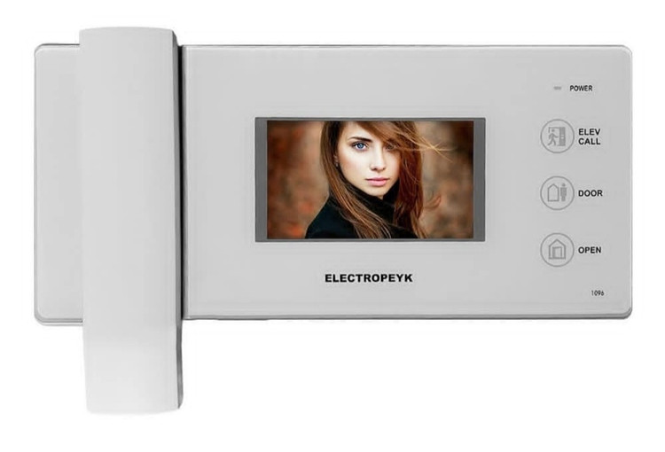 گوشی تصویری الکتروپیک مدل ۱۰۹۶ صفحهنمایش ۴.۳ اینچ از نوع LCD-TFT است. بر روی صفحهی نمایش محصول از پلکسی ضد خش استفاده شده است. در قسمت سمت چپ محصول نیز دسته گوشی بهمنظور برقراری ارتباط صوتی تعبیهشده است که پس از پایان مکالمه با مراجعهکننده با قرار دادن دسته گوشی، ارتباط صوتی و تصویر بهصورت مغناطیسی قطع میگردد. در کنار گوشی و بالای دکمههای تنظیمات، محل تعبیه کارت حافظه قرارگرفته است که عکس و فیلمهای ذخیرهشده ( تا ظرفیت ۱۶ گیگابایت ) را در خود ذخیره میکند و هر زمان که کاربر نیاز به بازبینی آنها داشت از طریق گزینههای داخل منو قابلدسترسی خواهد بود. در قسمت رابط کاربری علاوه منوی تنظیمات گرافیکی، سه عدد دکمه لمسی با فناوری تاچ خازنی در قسمت جلو و سمت راست گوشی قرارگرفته است که از طریق آنها میتوان عملیاتی نظیر باز کردن درب، مشاهده تصویر بیرون و فراخوانی آسانسور را انجام داد. جنس بدنه این محصول از مواد ABS ساختهشده مقاومت بالایی را در برابر کهنگی و تغییر رنگ به آن داده است.