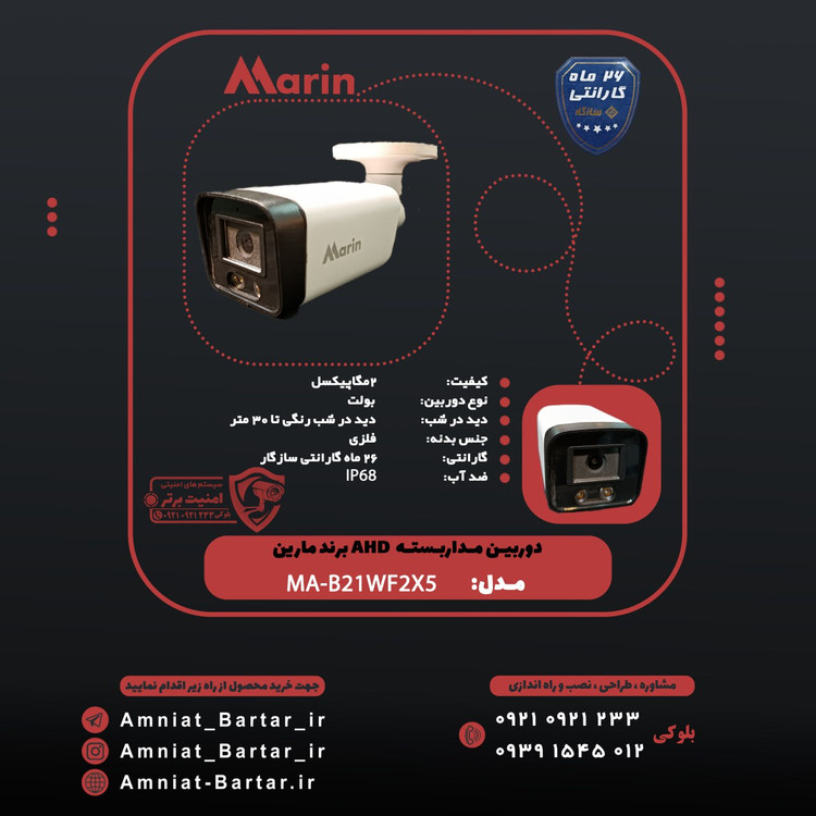مدل دوربین بولت: 2 عدد دوربین 2 مگ بولت مارین مدل - MA-B21WF2X5