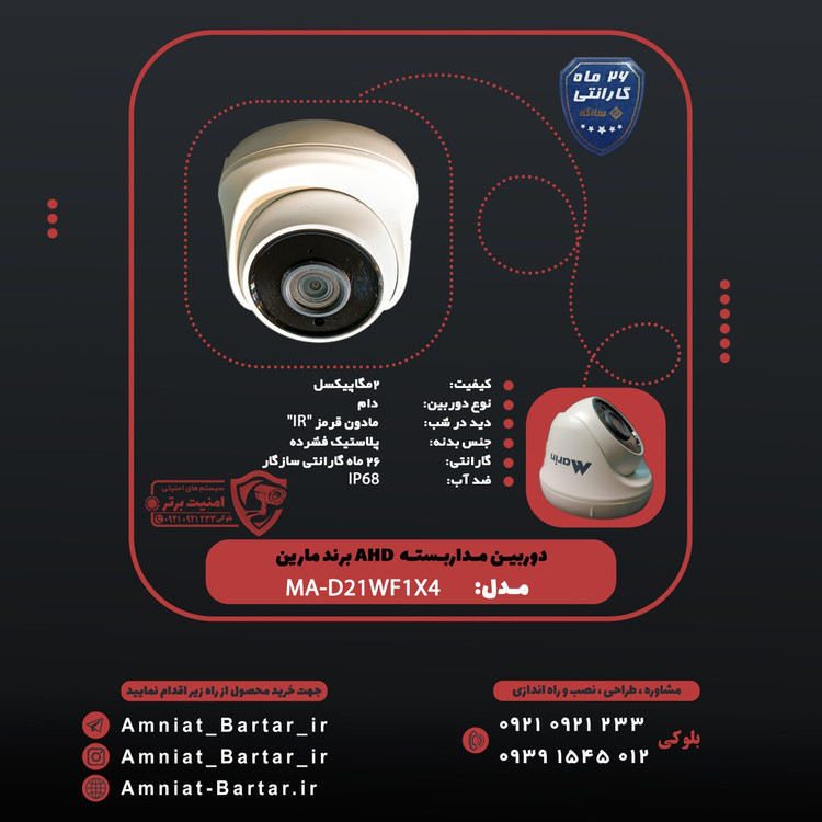 مدل دوربین دام: 2 عدد دوربین 2 مگ دام مارین مدل - MA-D21WF1X4