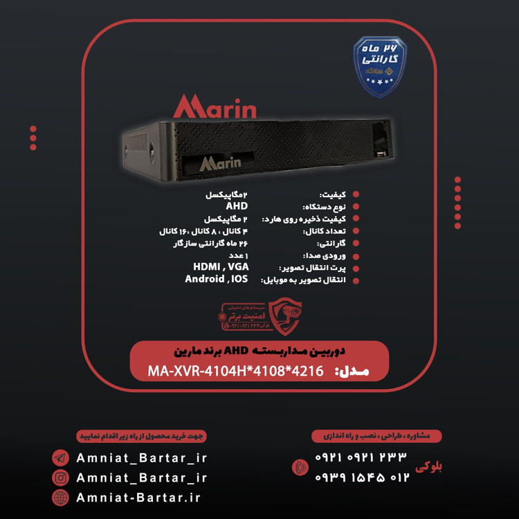 مدل دستگاه DVR: دستگاه 4 کانال 2 مگ مارین - مدل Marin MA-4104H