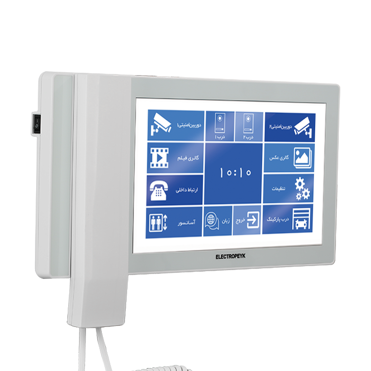 گوشی تصویری مدل ۱۱۹۸، دارای صفحهنمایش ۱۰ اینچ تمام لمسی از نوع خازنی است. بر روی صفحه¬ی نمایش محصول از پلکسی ضد خش استفاده شده است. در قسمت سمت چپ محصول نیز دسته گوشی بهمنظور برقراری ارتباط صوتی تعبیهشده است که پس از پایان مکالمه با مراجعهکننده با قرار دادن دسته گوشی، ارتباط صوتی و تصویر بهصورت مغناطیسی قطع میگردد. در کنار گوشی، محل تعبیه کارت حافظه قرارگرفته است که عکس و فیلمهای ذخیرهشده ( تا ظرفیت ۱۲۸ گیگابایت ) را در خود ذخیره میکند و هر زمان که کاربر نیاز به بازبینی آنها داشت از طریق گزینههای داخل منو قابلدسترسی خواهد بود. در قسمت رابط کاربری از طریق منوی تنظیمات گرافیکی میتوان تنظیمات مختلفی اعم از مشاهده تصاویر و فیلمهای ذخیرهشده، فراخوانی آسانسور، انتخاب ملودی زنگ، برقراری ارتباط داخلی و غیره را انجام داد. جنس بدنه این محصول از مواد ABS ساختهشده که مقاومت بالایی را در برابر کهنگی و تغییر رنگ به آن داده است.