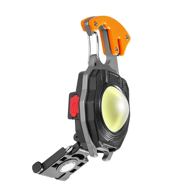 چراغ قوه چند کاره مدل W5147 یک محصول کوچک و جمع و جور است که به راحتی در جیب جا می شود. در سفر، کمپینگ، محل کار، هنگام تعمیرات، در محیطهای باز و هر جایی که نیازمند روشنایی باشید این چراغ قوه مفید خواهد بود. از چراغ قوه چند کاره می توانید به عنوان جاسوئیچی استفاده کرده و یا آن را به کیفتان وصل کنید. با فشردن دکمه خاموش و روشن آن برای مرتبه اول نور مهتابی با شدت زیاد، مرتبه دوم نور مهتابی با شدت کم، در مرتبه سوم نور آفتابی با شدت زیاد، در مرتبه چهارم نور آفتابی با شدت کم، در مرتبه پنجم نور قرمز و در مرتبه ششم نور قرمز چشمک زن دریافت خواهید کرد. و در نهایت با فشردن کلید برای بار هفتم چراغ قوه خاموش خواهد شد. جنس آلیاژ بدنه چراغ قوه چند کاره آلومینیوم است که در برابر ضربه مقاوم است. برای شارژ آن کافی است از کابل شارژ type C که به همراه چراغ قوه قرار دارد، استفاده کنید. پشت این چراغ قوه یک فندک تبیعه شده است که با فشردن دکمه مربوط به فندک و نگه داشتن دکمه، فندک شروع به قرمز شدن می کند و با برداشتن دست از روی دکمه فندک خاموش می شود. این چراغ قوه چند کاره دارای سوت نجات و همچنین تیغ که در مواقع اضطراری می توان از آن استفاده کرد. این چراغ قوه 2 عدد پیچ گوشتی نیز دارد. که می توان سری پیچ گوشتی مورد نظر را در سوراخ بالای چراغ قوه قرار داد و استفاده کرد. پشت چراغ قوه یک آهنربا وجود دارد که موقع کار می توان به سطوح فلزی متصل کرد.