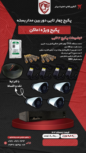 مدل دوربین: دو عدد دوربین بالت 2مگاپیکسل ،بدنه فلز ، دید در شب سیاه سفید(IR)